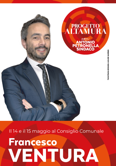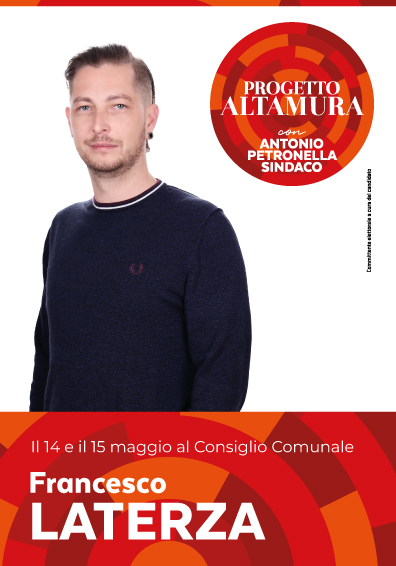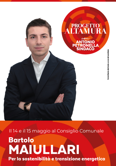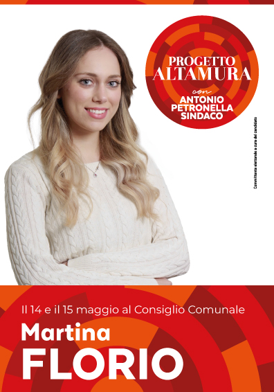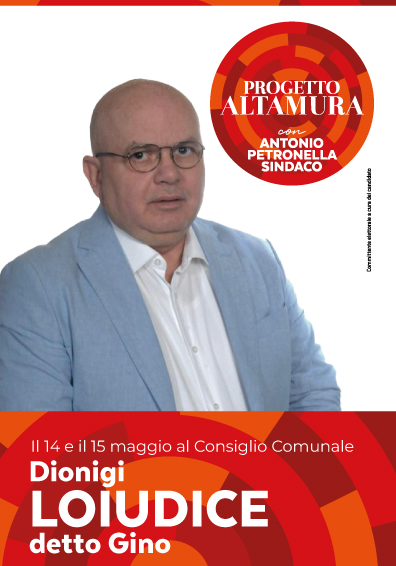 Progetto Altamura Un'idea che diventa città . I nostri Candidati DIONIGI LOIUDICE Detto Gino o Luigi Scarica CVScarica Casellario MARIA ADORANTE detta Mari o Maria Scarica CVScarica Casellario ADRIANO ROCCO ANTONACCI Scarica CVScarica Casellario ALESSIA BRUNO detta Alessia Scarica CVScarica Casellario ANGELA CALIA detta Angela Scarica CVScarica Casellario FEDERICA CANANZI Scarica CVScarica Casellario MARIO CASTORO detto Mario Scarica CVScarica Casellario MICHELE CEGLIA Scarica CVScarica Casellario FRANCESCO CORNACCHIA detto Francesco Scarica CVScarica Casellario EMILIA CORNACCHIA Scarica CVScarica Casellario FRANCESCO DAMBROSIO Scarica CVScarica Casellario GIUSEPPE DILEO Scarica CVScarica Casellario IRENE FERRULLI Scarica CVScarica Casellario FRANCESCO LATERZA Scarica CVScarica Casellario STEFANO LORUSSO Scarica CVScarica Casellario BARTOLO MAIULLARI Scarica CVScarica Casellario VITO MILANO Scarica CVScarica Casellario SALVATORE PERAGINE Scarica CVScarica Casellario ANTONIA PICERNO detta Antonella Scarica CVScarica Casellario ROBERTA STRICCOLI detta Roby o Robi Scarica CVScarica Casellario FRANCESCO VENTURA Scarica CVScarica Casellario VITANTONIO VISCANTI detto Vito Scarica CVScarica Casellario MARTINA FLORIO Scarica CVScarica Casellario